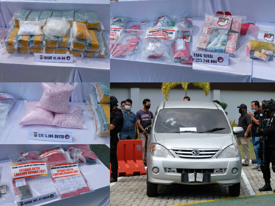 Kapolda Riau, Irjen Pol Agung Setya Imam Efendi, SIK, menggelar Konperensi Pers Pengungkapan Shabu dalam Operasi Antik Lancang Kuning 2021 Polda Riau di halaman belakang markas Komando Polda Riau