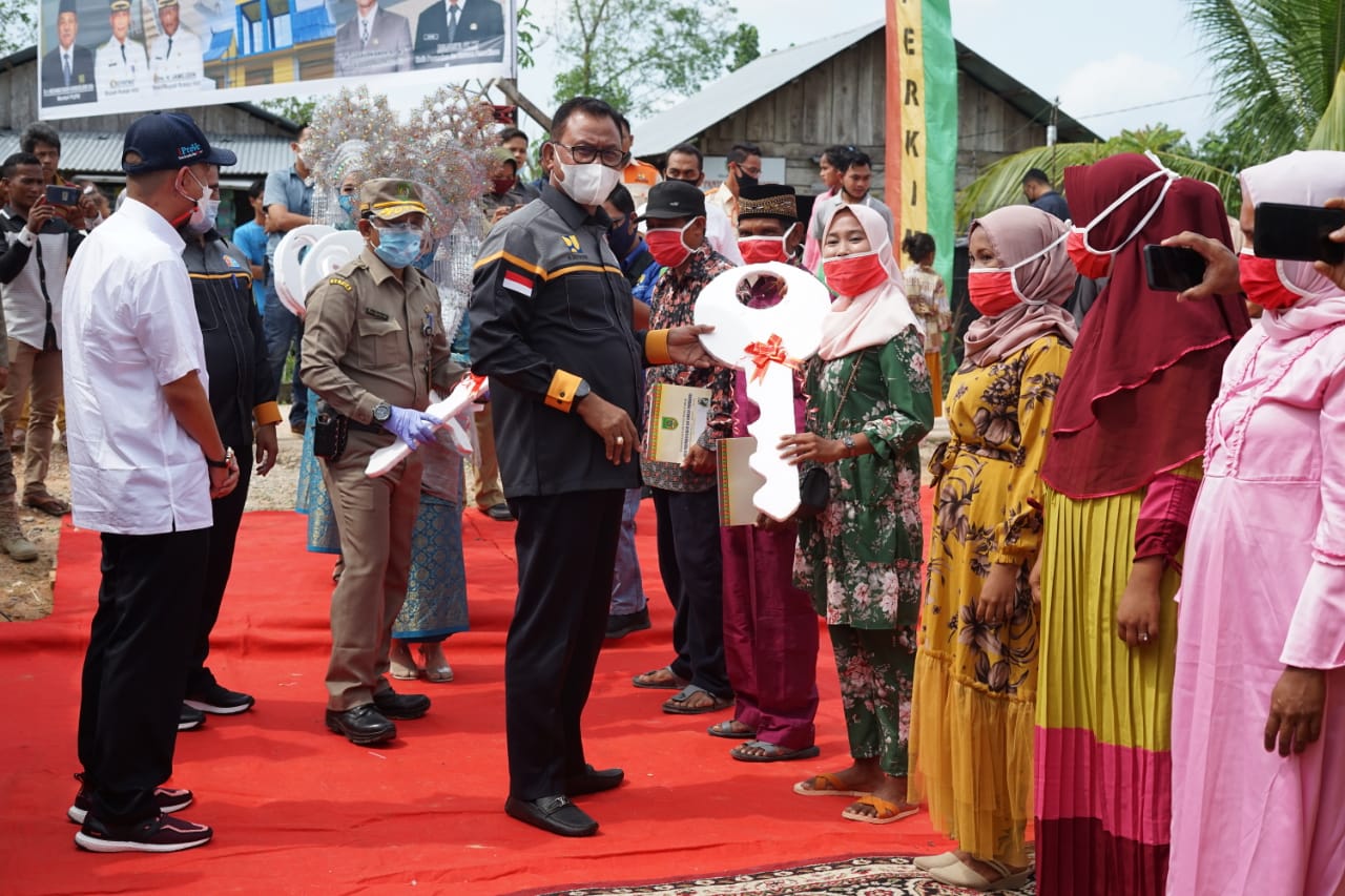 ROKAN HILIR, AKTUALDETIK.COM,- Bupati Rokan Hilir H Suyatno menyerahkan 30 unit rumah khusus (Rusus) nelayan Kecamatan Bangko kepada masyarakat penerima, Selasa (16/3/2021).