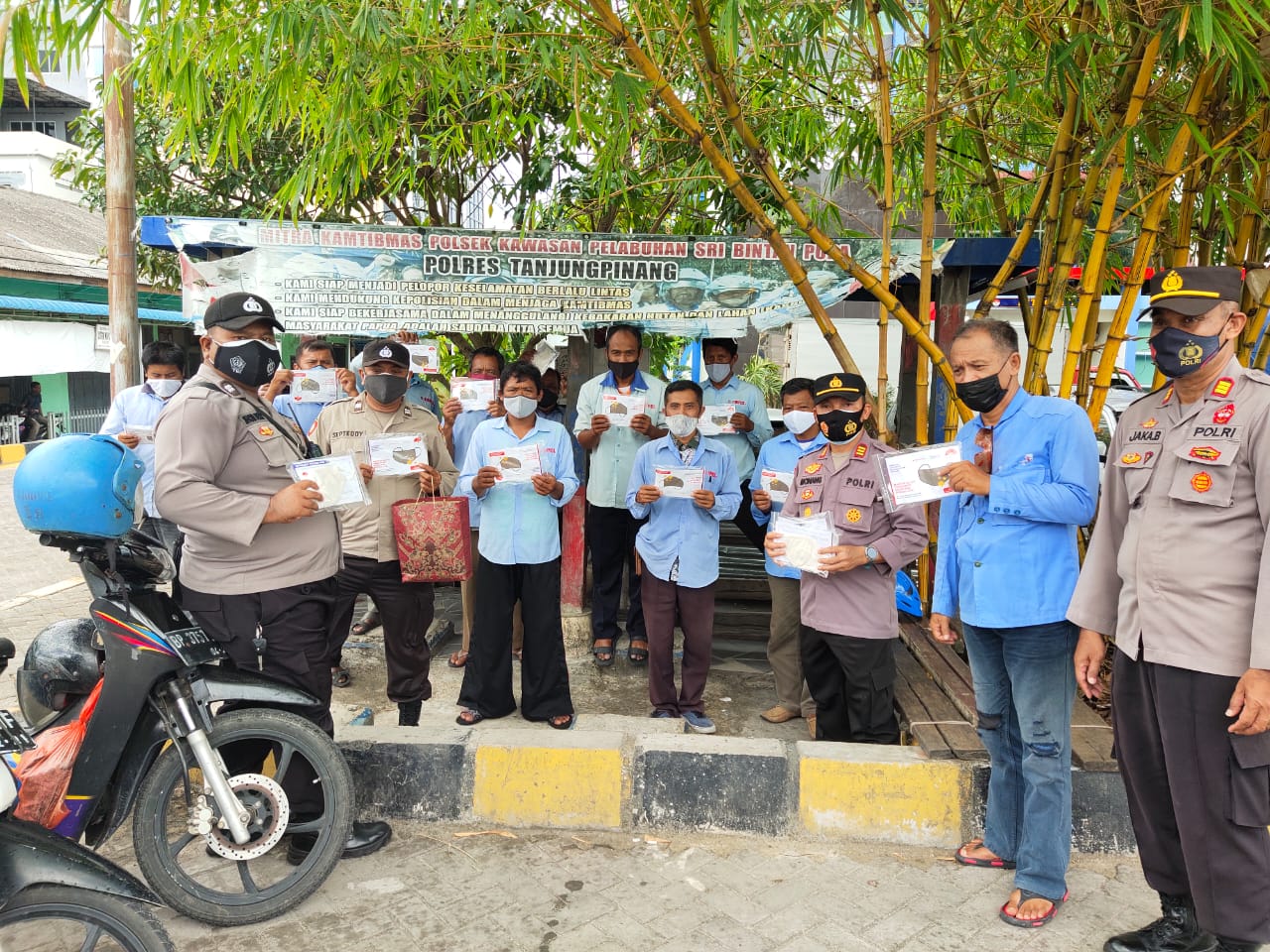 Kapolsek KKP Kompol Anjar Yogota Widodo. SIK, melalui AKP Monang P Silalahi, SH Wakapolsek mengatakan, pembagian masker diberikan secara gratis kepada stagholder pelabuhan guna menekan meningkatnya kasus Covid-19 di Kota Tanjungpinang.