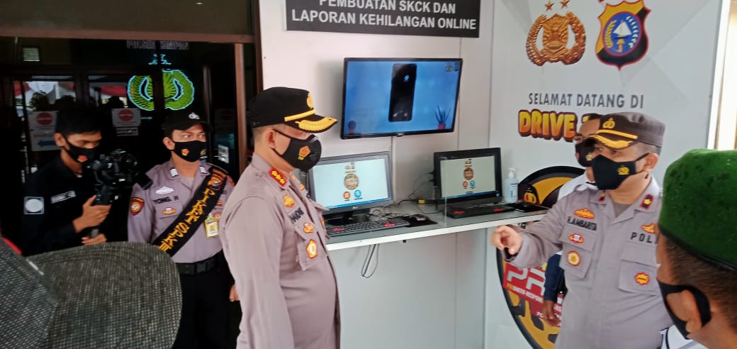"Disana sudah sediakan alat-alat komputerisasi atau gawai, serta info-info tentang pelayanan SKCK dan Laporan Kehilangan Barang, sehingga meski masyarakat tidak memiliki ponsel android, di loket pelayanan bisa dilakukan secara langsung untuk membuat surat SKCK dan Laporan kehilangan barang yang sudah disediakan di lokasi pintu masuk drive thru," beber Kapolresta.