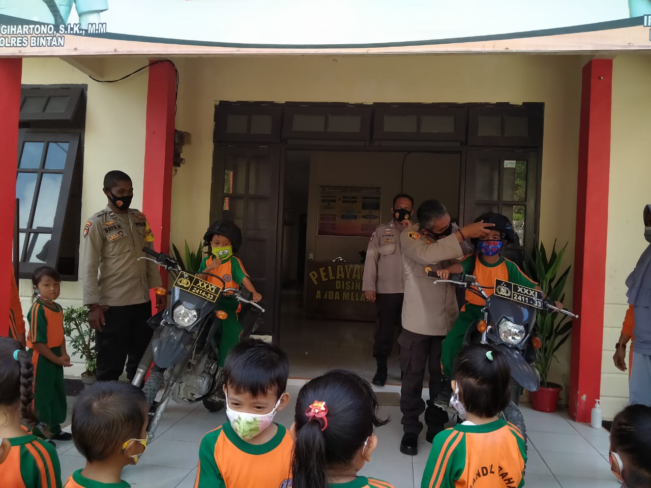 kapolsek Tambelan IPDA Missyamsu Alson mendapat kunjungan dari murid-murid TK Kandil Bahar kecamatan Tambelan ke Mako Polsek Tambelan