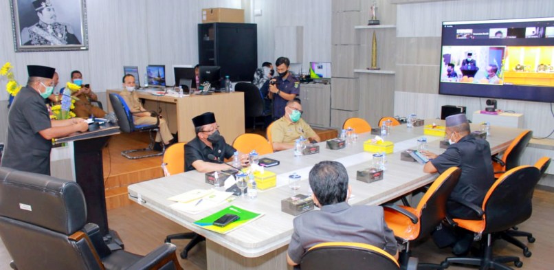 SIAK SRI INDRAPURA, AKTUALDETIK.COM,- Bupati Siak Alfedri mengikuti Rapat Paripurna tentang Penyampaian Laporan Keterangan Pertanggungjawaban (LKPj) Kepala Daerah Tahun 2020 secara Virtual. Kegiatan tersebut berlangsung di Ruang Bandar Siak, Kantor Bupati Siak, Senin(12/04/21).