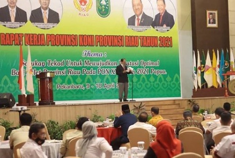 KONI juga memaparkan target yang ingin diraih Riau pada ajang PON XX 2021 di Papua mendatang dan membahas kesiapan Pekan Olahraga Provinsi Riau (Porprov) 2022 di Kuantan Singingi (Kuansing).