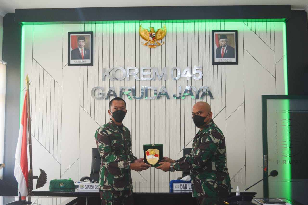 Penrem 045/Garuda Jaya. Danrem 045/Garuda Jaya Brigjen TNI M Jangkung Widyanto, S.I.P. M.Tr.(Han) memberikan pembekalan tentang kondisi wilayah dan satuan Korem 045/Gaya