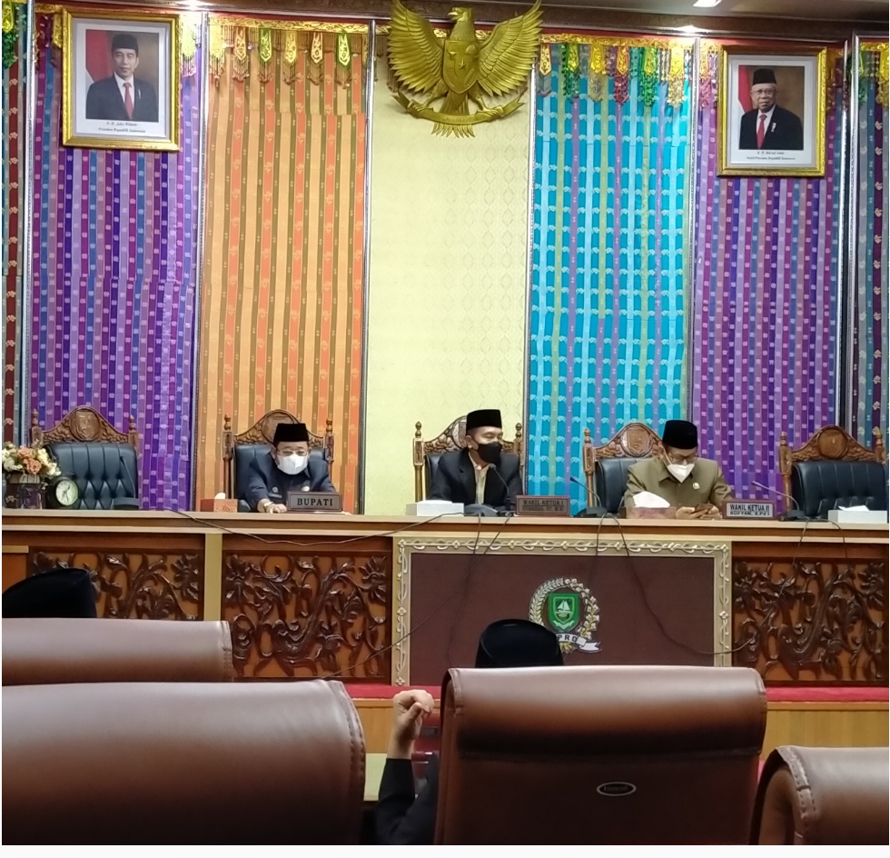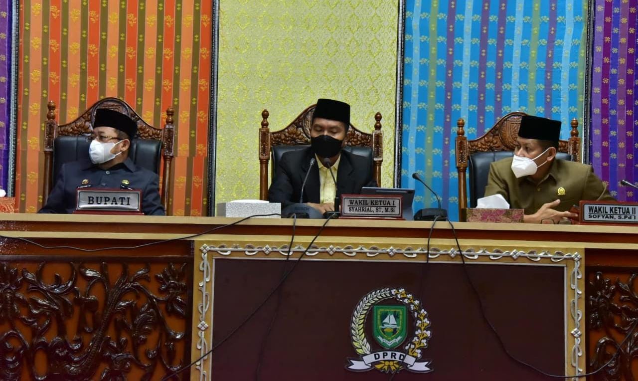 Rapat Paripurna ini dipimpin Wakil Ketua III DPRD, Syahrial, SE, M.Si didampingi Wakil Ketua II, Syofian. Dalam sambutannya, Syahrial mengatakan, sebelumnya LKPJ 2020 yang disampaikan Bupati sudah dibahas Banggar DPRD. Kemudian Banggar juga telah melakukan rapat kerja dengan Tim Anggaran Pemerintah Daerah (TAPD). Selaku Ketua Banggar yang sekaligus pimpinan Rapat Paripurna, Syahrial kemudian menunjuk anggota Banggar, Hajja Zahraini sebagai jurubicara untuk menyelesaikan hasil pembahasan LKPJ 2020 tersebut.