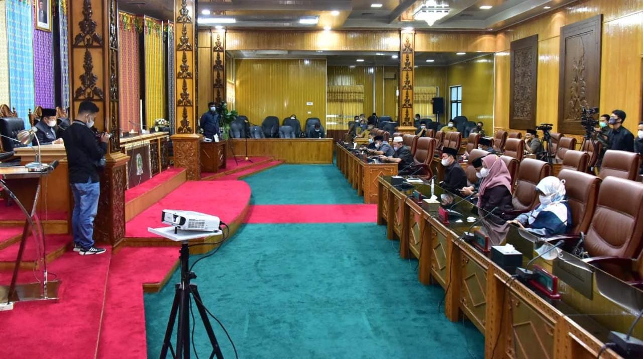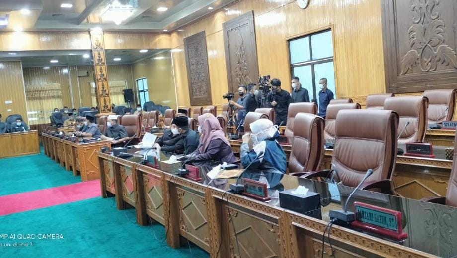 Sedangkan anggota DPRD yang menandatangani sebanyak 24 orang. Namun, dari 24 anggota DPRD yang menandatangani yang hadir di ruang Rapat Paripurna hanya 7 orang, sisanya mengikuti secara virtual.