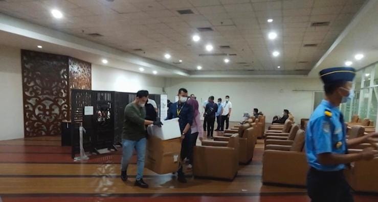 Penggerebekan lokasi rapid test antigen dengan alat bekas di Bandara Kualanamu.