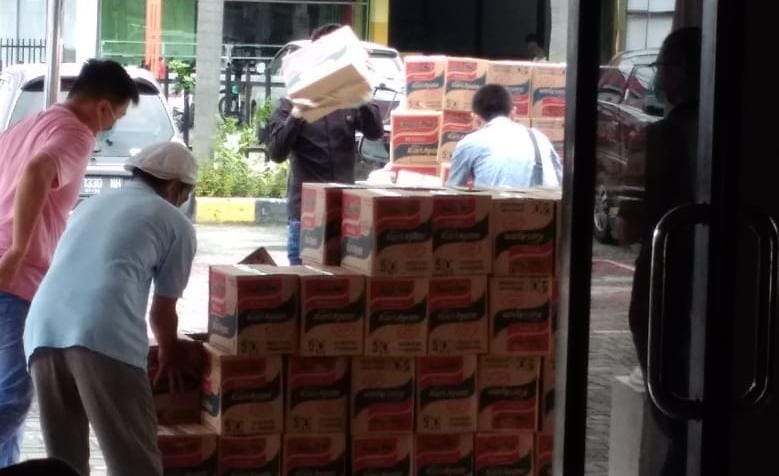 Barang-barang berupa bahan makanan pokok itu terus di lansir oleh sejumlah perusahaan dengan menggunakan truk pengangkut barang ke kantor Dinas Tenaga Kerja Provinsi Riau sebagaiamana disaksikan oleh awak media hari ini.