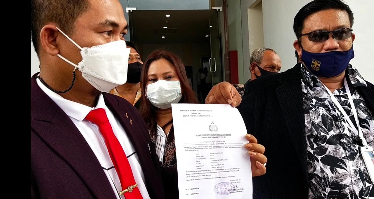Foto : Tim Kuasa Hukum Buruh PT Padasa Enam Utama, Saat Memberikan Keterangan Pers Usai Melaporkan Sejumlah Anggota Polisi ke Propam Polda Riau