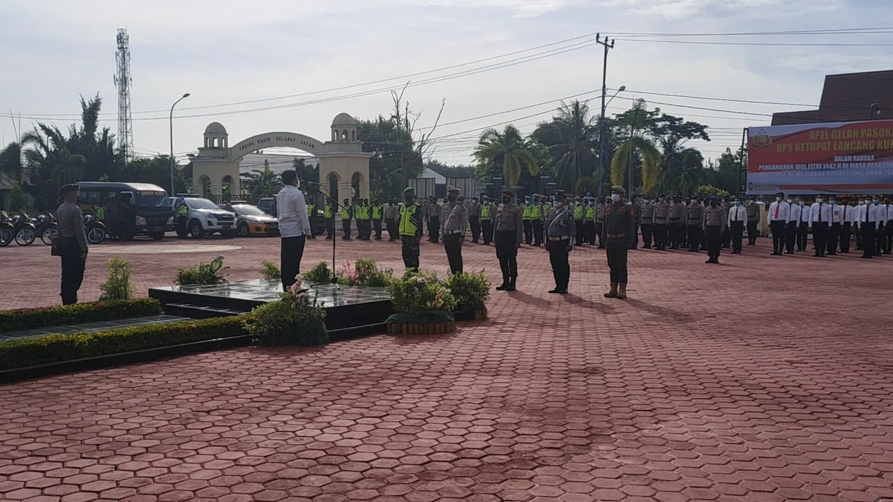 BENGKALIS AKTUALDETIK.COM - Bertempat dihalaman Mapolres Bengkalis di jalan Pertanian, Kapolres Bengkalis gelar apel pasukan dalam rangka pengamanan Idul Fitri 1442 H/2021 M, dengan Sandi Operasi Ketupat Lancang Kuning 2021, pada Rabu (5/5/2021), guna mewujudkan situasi yang aman serta kondusif, tertib dan lancar turut hadir unsur dari Prokopim Pemda setempat yaitu Bupati Bengkalis yang di wakili Asisten III, H. Tengku Zainuddin sebagai pimpinan apel sekaligus membacakan amanat Kapolri pada kesempatan apel tersebut.