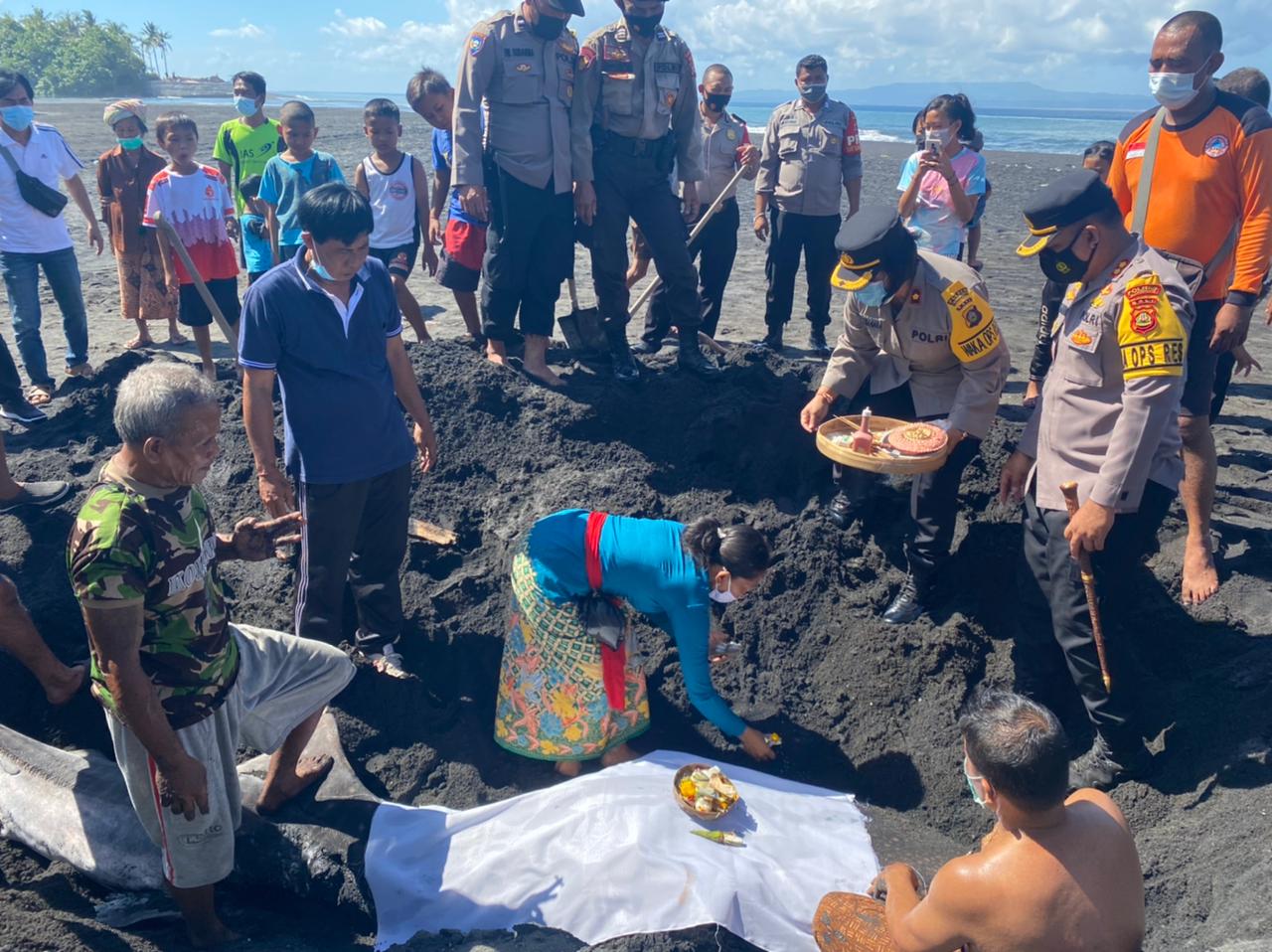 "Team TNI polri memutuskan untuk dikubur agar tidak menimbulkan bau busuk dan menjadi sumber penyakit dan mencemari lingkungan pesisir," jelas Kapolres.