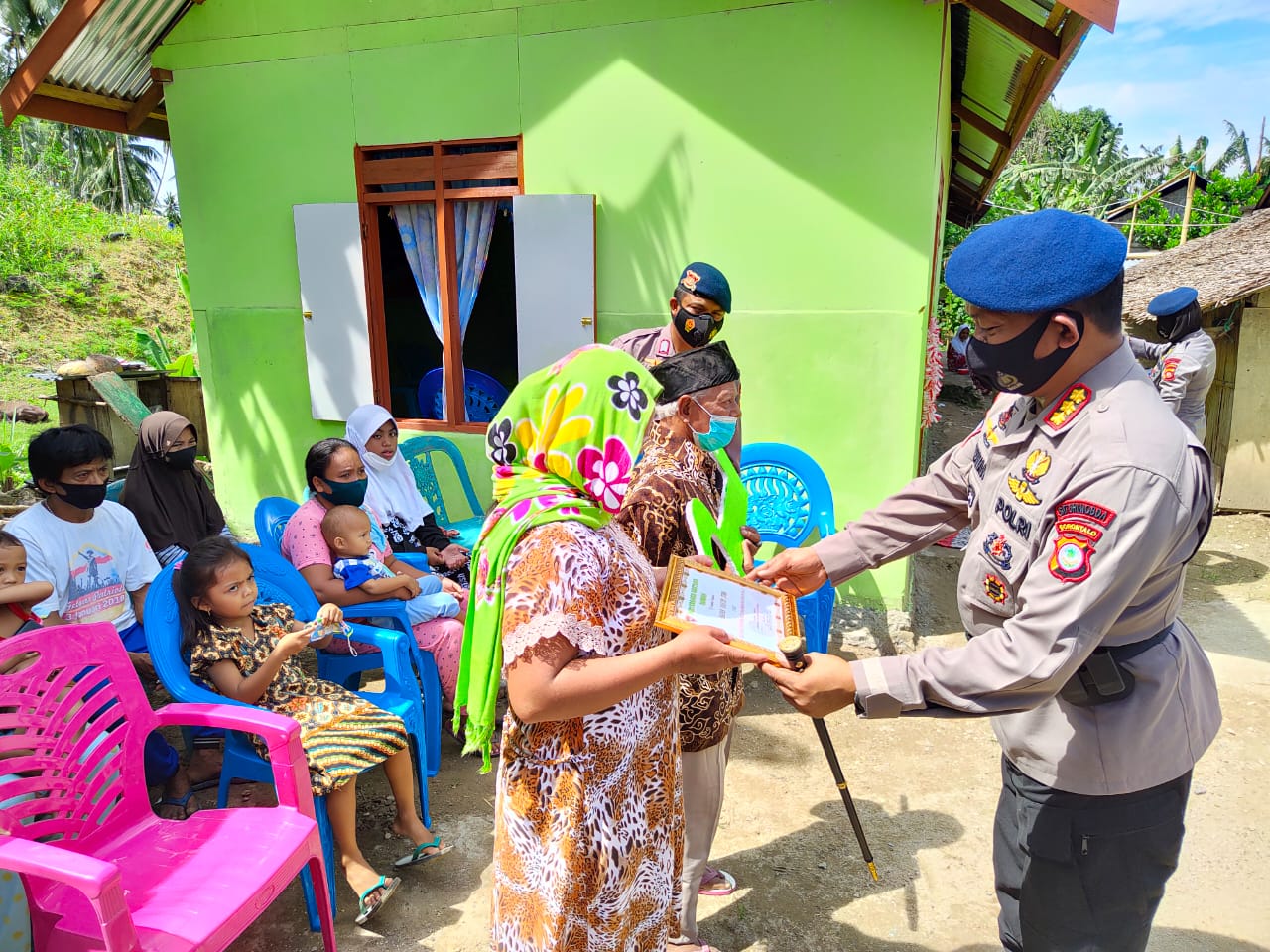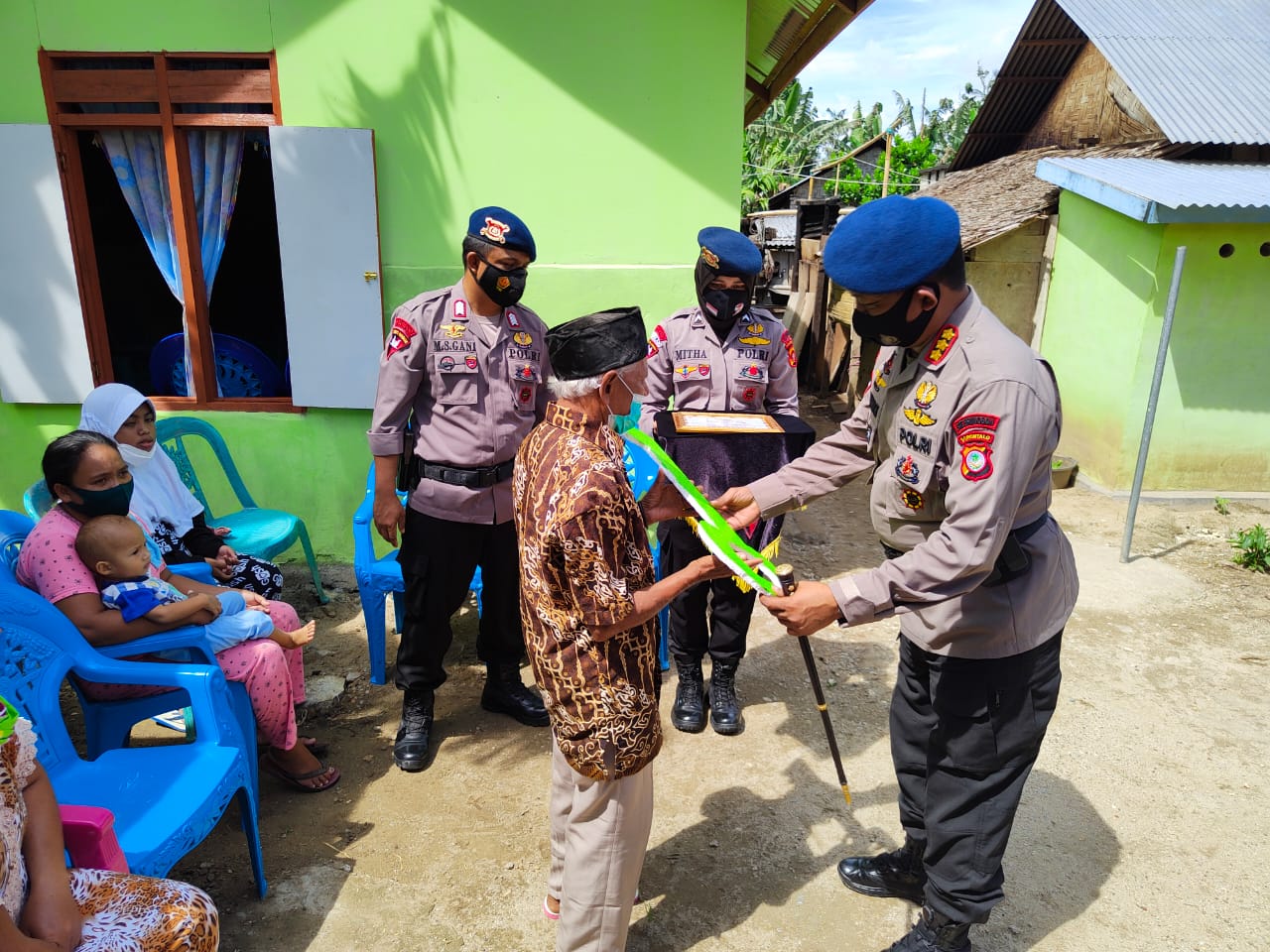 Dansat Brimob Polda Gorontalo Kombes Pol Muhammad Ridwan S.I.K yang memimpin acara penyerahan bantuan rumah layak huni (bedah rumah) dari Satbrimob Polda Gorontalo kepada bapak Karim Suma.