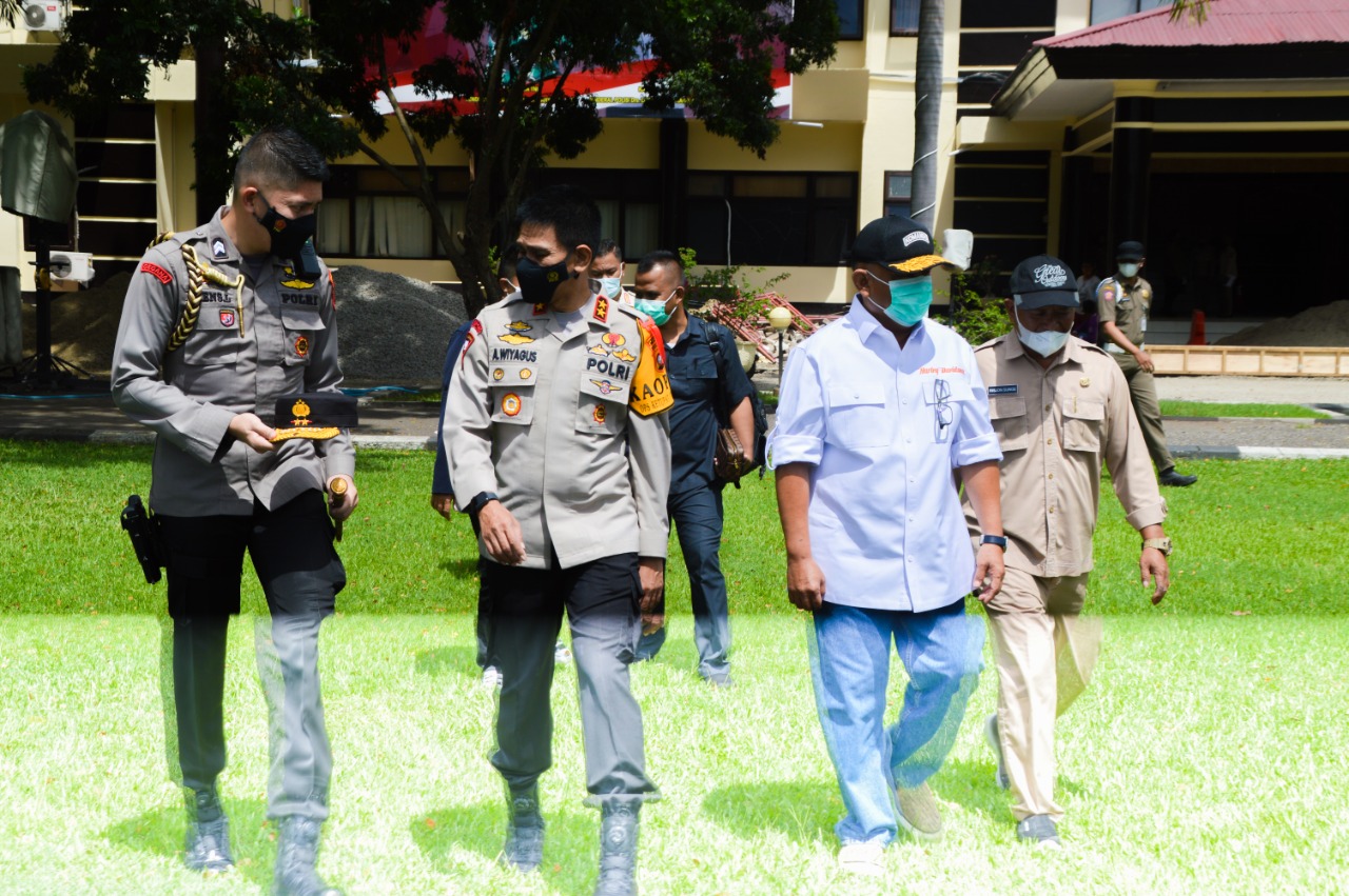 GORONTALO AKTUALDETIK.COM - Polda Gorontalo bersama pemprov gorontalo menggelar Pasar Murah NKRI, yang diresmikan langsung oleh Gubernur Gorontalo Rusli Habibie didampingi oleh Kapolda Gorontalo Irjen Pol Dr. Ahkmad Wiyagus, S.I.K., M.Si., M.M., Kegiatan ini digelar sebagai bentuk melawan spekulan yang kerap menaikan harga pangan saat menjelang hari Raya Idul Fitri 1442 H ditengah wabah covid-19. Pasar Murah tersebut dilaksanakan dilapangan Mako Polda Gorontalo, Selasa, (11/05/2021)