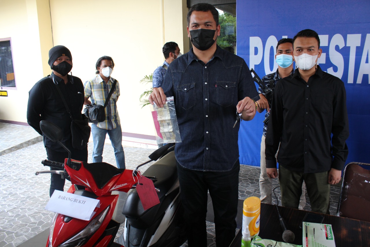 Setelah kejadian itu berlangsung, RM langsung melaporkannya ke Polresta Pekanbaru. Kurang dari dua puluh empat jam, Polresta Pekanbaru berhasil membekuk korban di sekitar Jalan Labersa dan mengamankan barang bukti 1 unit sepeda motor dan 1 lembar Surat Tanda Nomor Kendaraan (STNK).