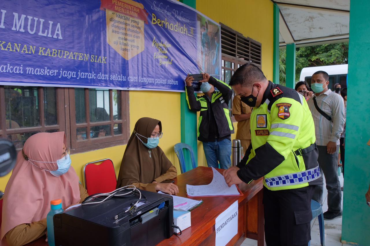 Peninjauan selanjutnya, rombongan Kapolda menuju kantor Kampung Jati Mulya Kecamatan Kerinci Kanan yang sedang dilaksanakan kegiatan vaksinasi masyarakat.