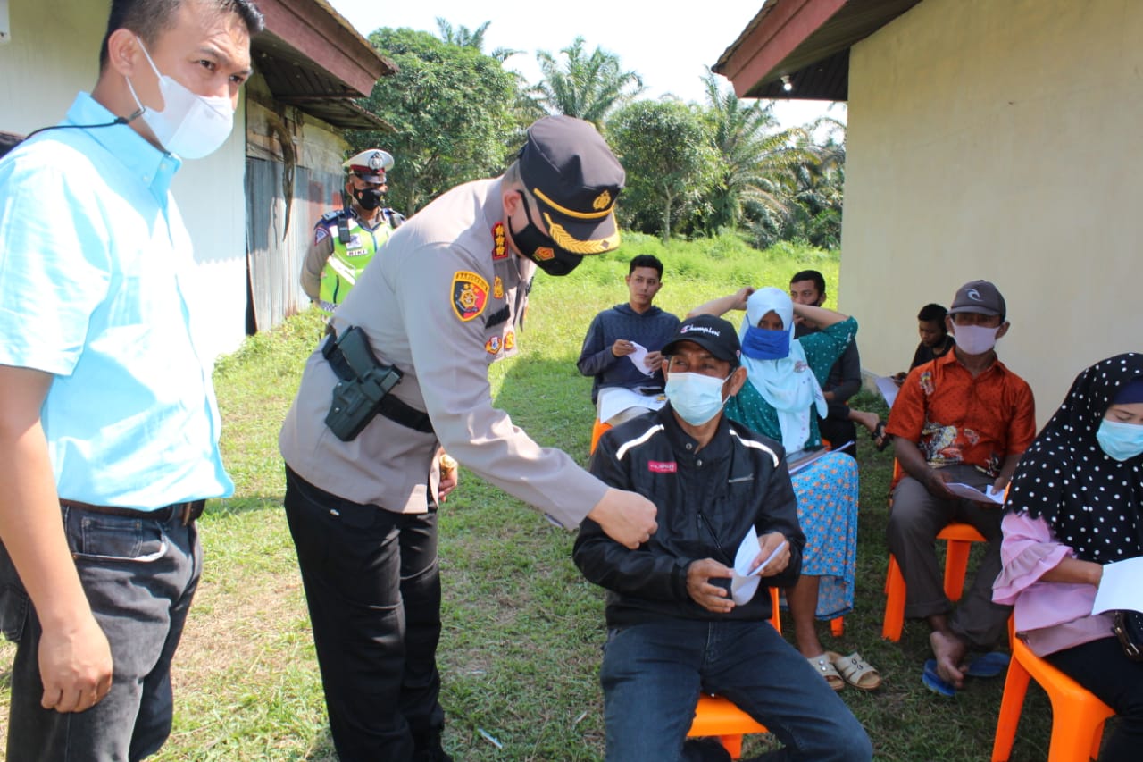 Kapolresta Pekanbaru Kombes Pol H. Nandang Mumin Wijaya, S.I.K.,M.H mengunjungi pelaksanaan pemberian Vaksinasi Covid-19 masal gratis kepada warga Kecamatan Rumbai, yang diselenggarakan di Mapolsek Rumbai