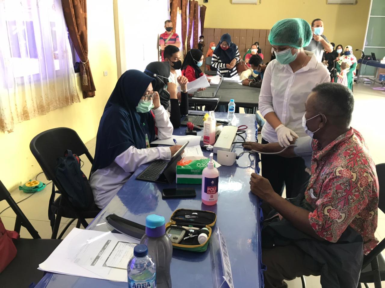 Kegiatan vaksinasi ini dimulai dari pendataan peserta, skrining untuk mengetahui kondisi dan riwayat kesehatan peserta, pemberian vaksinasi dan melakukan observasi terhadap peserta yang telah menjalani vaksinasi.