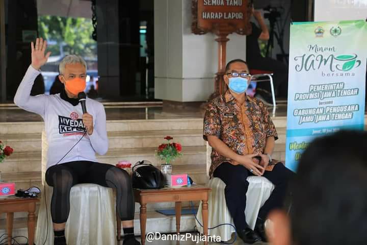 SEMARANG AKTUALDETIK.COM - Gubernur Jawa Tengah Ganjar Pranowo mendorong agar seluruh warganya menjaga tubuh dengan meminum jamu. Tenaga kesehatan dan pasien COVID-19 juga didorong untuk minum jamu guna menambah stamina.