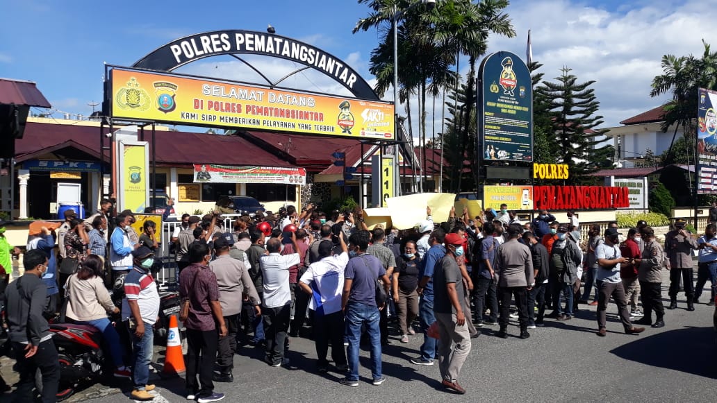 Usai berorasi dan menyampaikan sejumlah tuntutan, massa aksi kemudian bergerak ke depan Mapolres Pematangsiantar dengan pengawalan petugas kepolisian.