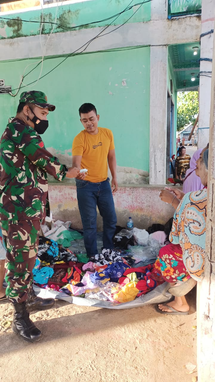 KAYOA AKTUALDETIK.COM - Dipasarkan Desa Laluin Kecamatan Kayoa Selatan Praka Darto yang merupakan Babinsa Desa Tersebut Membagikan Masker dan tak lupa mengingatkan Masyarakat binaannya untuk ikut serta dalam Vaksinasi Massal. Rabu (23/06/2021)