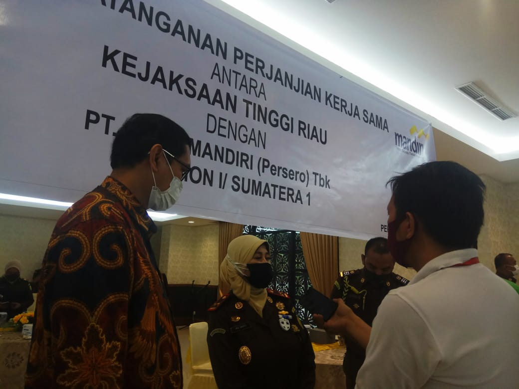 Penandatanganan Perjanjian Kerja Sama (PKS) dilakukan langsung oleh Kepala Kajati Riau, Dr. Mia Amiati dan Sapto Adi selaku Area Head PT Bank Mandiri (persero) Tbk, Area Pekanbaru, .