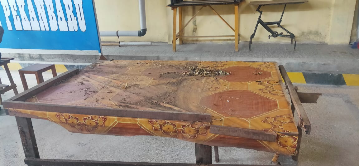 Sementara dari pelaku RR berhasil mengamankan barang bukti berupa 1 buah meja yang bekas dipotong milik pedagang.