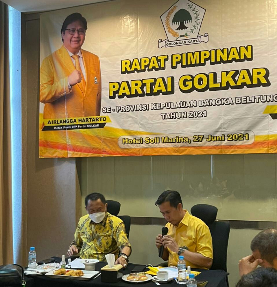PANGKALPINANG AKTUALDETIK.COM - Dewan Pimpinan Daerah (DPD) Partai Golongan Karya (Golkar) Provinsi Kepulauan Bangka Belitung (Babel) gelar Rapat Pimpinan Daerah Partai Golkar seluruh pengurus kabupaten/kota di Hotel Soll Marina, pada Minggu, 27 Juni 2021