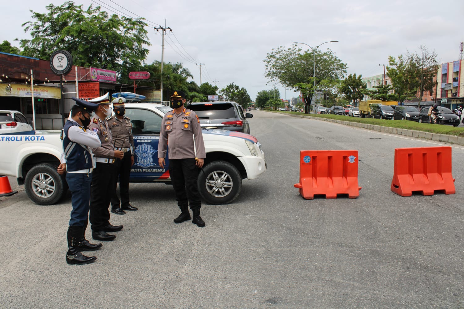 Guna Mencegah Mobilitas Masyarakat, Polresta Pekanbaru Lakukan Penyekatan di 4 Titik Ruas Jalan