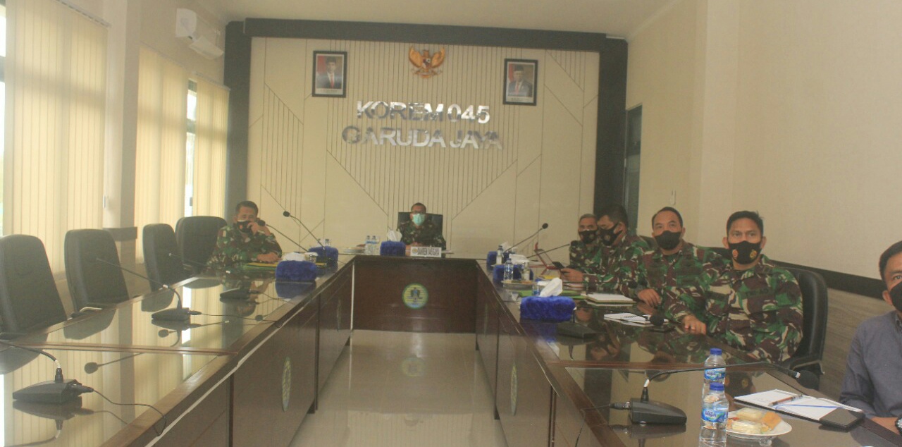 Setelah selesai vicon Danrem 045/Gaya memberikan penekanan kepada pejabat Staf Korem untuk bekerja keras dalam upaya pengendalian penanganan penyebaran Covid-19 diwilayah Provinsi Kep. Bangka Belitung dan mengharap adanya kerja keras ini bisa membuahkan hasil dalam menekan penyebaran Covid-19.