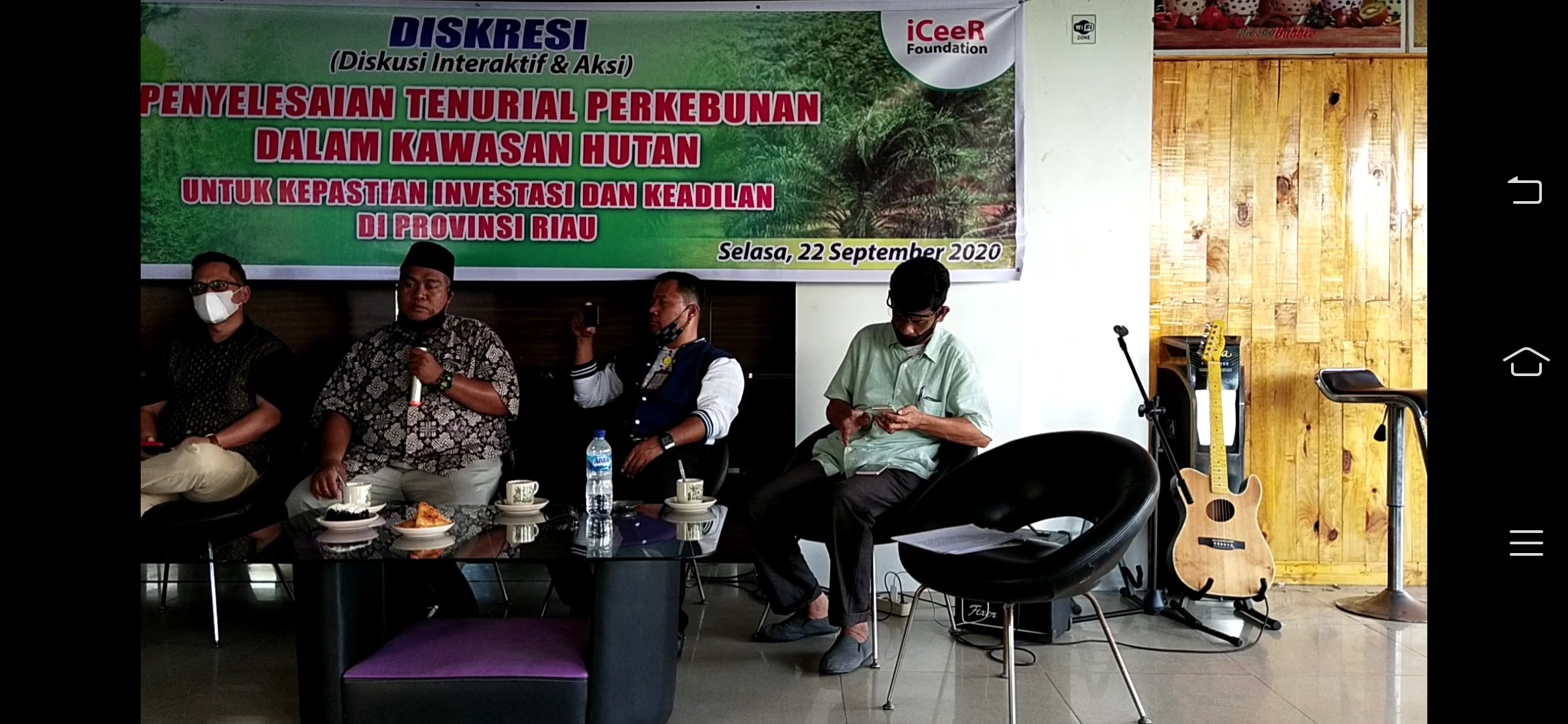 PEKANBARU AKTUALDETIK.COM - Insan Cinta Riau (iCeeR) Taja Diskusi Interaktif Dan Aksi (Diskresi) dengan Tema : Penyelesaian Tenurial Perkebunan Dalam Kawasan Hutan Untuk Kepastian Investasi Dan Keadilan di Provinsi Riau.