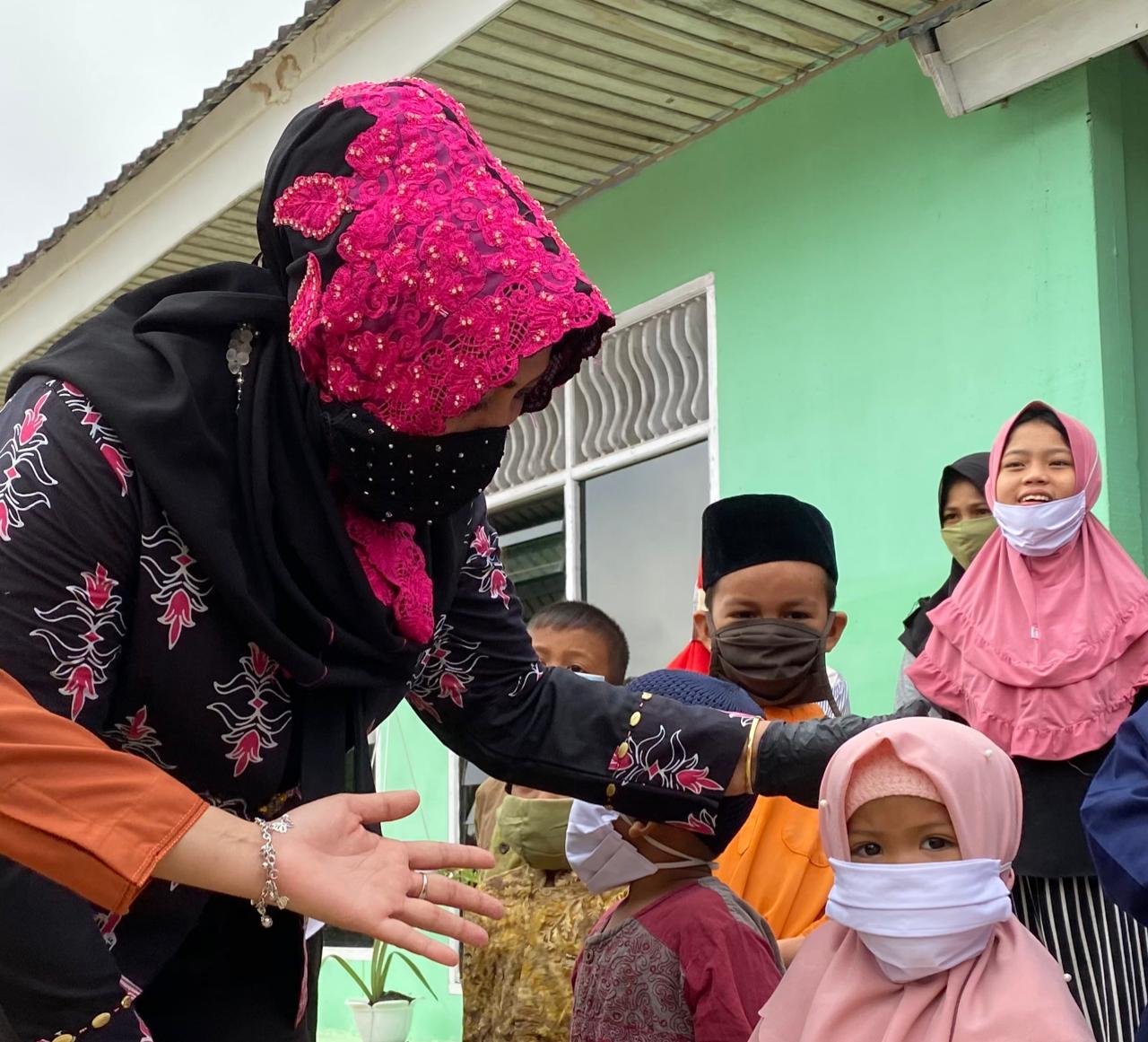 Diketahui, Hj Misnarni Syamsuar bagikan 700kg beras, Sembako dan Masker ke delapan Panti Asuhan yang tersebar di wilayah Kota Pekanbaru bersama kader PKK dan BK3S.