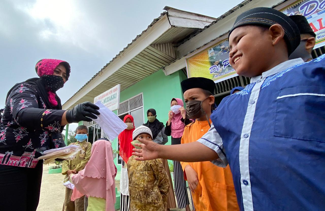 Berdasarkan rute yang telah ditentukan, Hj Misnarni Syamsuar memulai pembagian sembako dan masker ke Panti Asuhan Al-Akbar Kelurahan Sidomulyo Barat Kecamatan Tampan. Dimana tampak turut hadir Lurah Sidomulyo Barat.