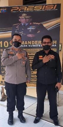 Foto. Kapolsek Tanah Jawa Kompol Selamat Manalu bersama dengan Ketua Umum Dewan Pimpinan Pusat LSM Lidik Kriminal-RI saat di Mako Polsek Tanah Jawa. Simalungun Sumatera Utara