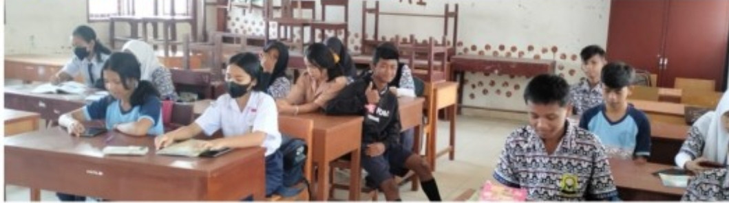 ​​​​Foto Siswa-siswi SMPN II Tapian Dolok saat proses belajar mengajar di dalam ruangan kelas dengan tidak menggunakan Masker