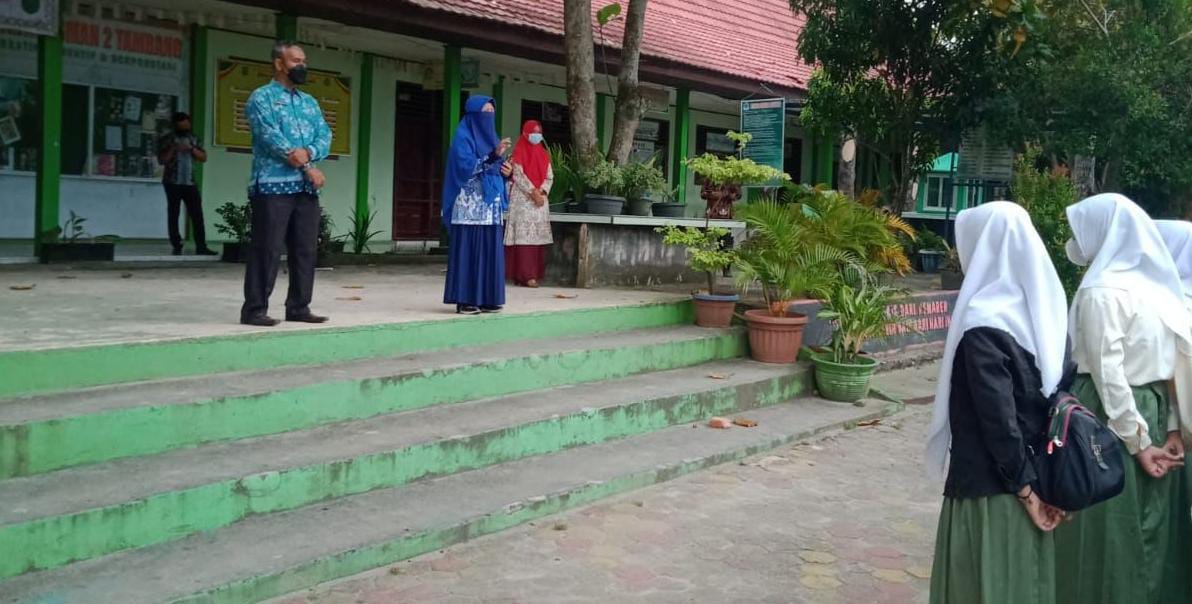 Kepala Sekolah SMAN 2 Tambang, Dr. Yanti Dasrita, M.Si, (jilbab biru) sedang memberi pengarahan Kepada Siswa-siswa SMAN 2 Tambang, Kabupaten Kampar.