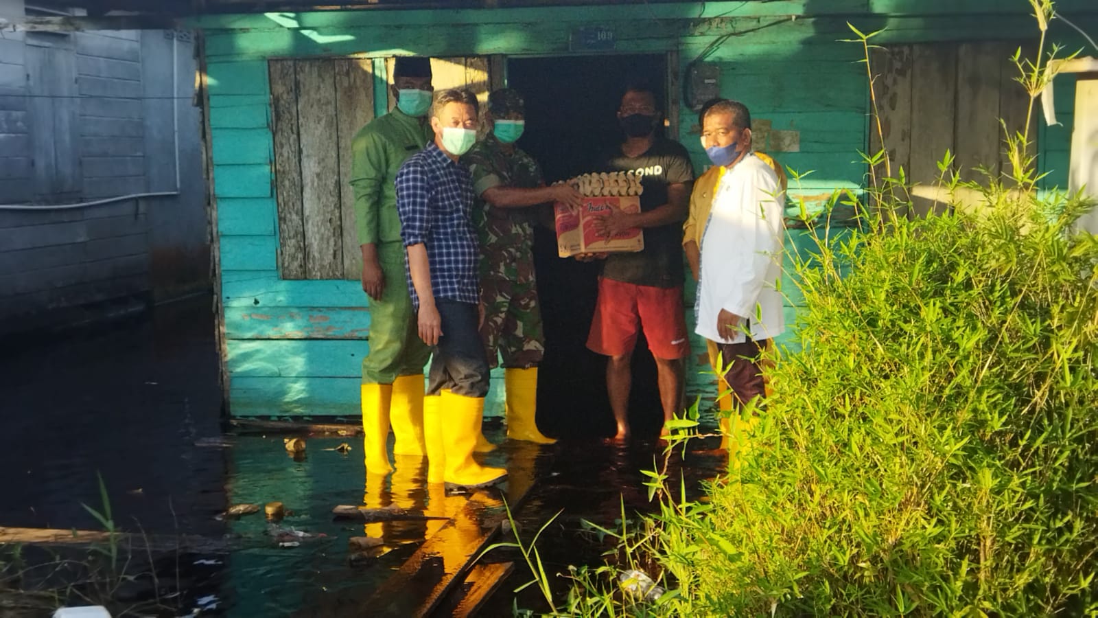 Bupati dan Wabup secara langsung mendatangi setiap rumah yang terdampak banjir sekaligus menyerahkan paket sembako yang terdiri dari beras, mie instan serta telor dengan total sebanyak 220 paket.