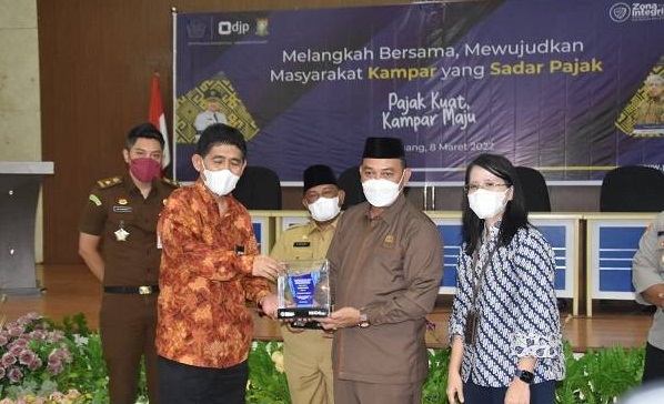 Hadir pada kesempatan tersebut Bupati Kampar H Catur Sugeng Susanto SH diwakili Sekretaris Daerah Kabupaten Kampar Drs H Yusri MSi, yang menerima langsung penghargaan apresiasi pajak dari KPP Pratama Bangkinang karena telah berkontribusi dalam melakukan pembayaran pajak.