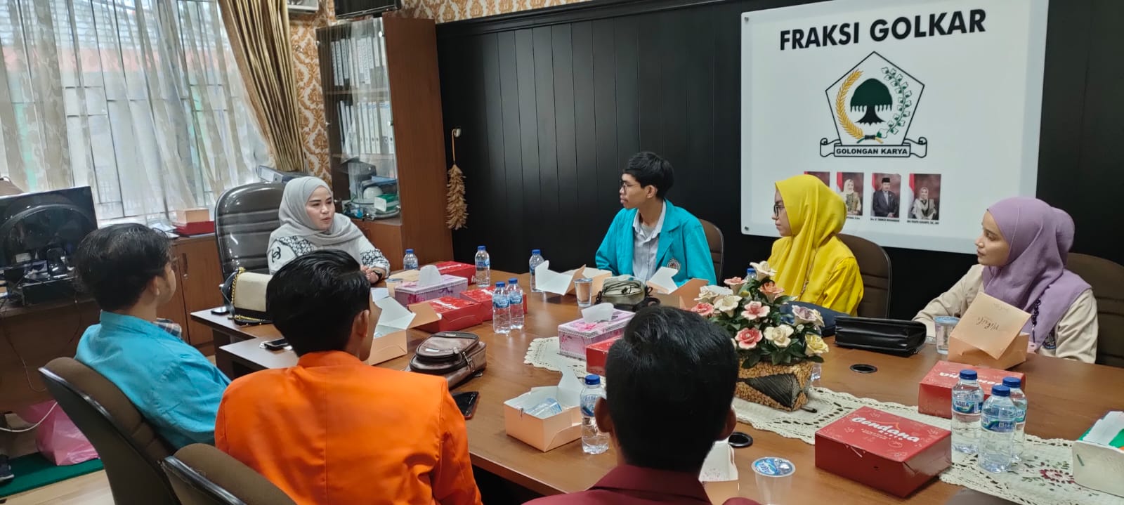 FOTO: Acara Kegiatan Pertemuan Diskusi Dan Silaturahmi Anggota DPRD Kota Pekanbaru, Ida Yulita Susanti, S.H.,M.H, Dan BEM Riau di Ruang Fraksi GOLKAR DPRD Kota Pekanbaru