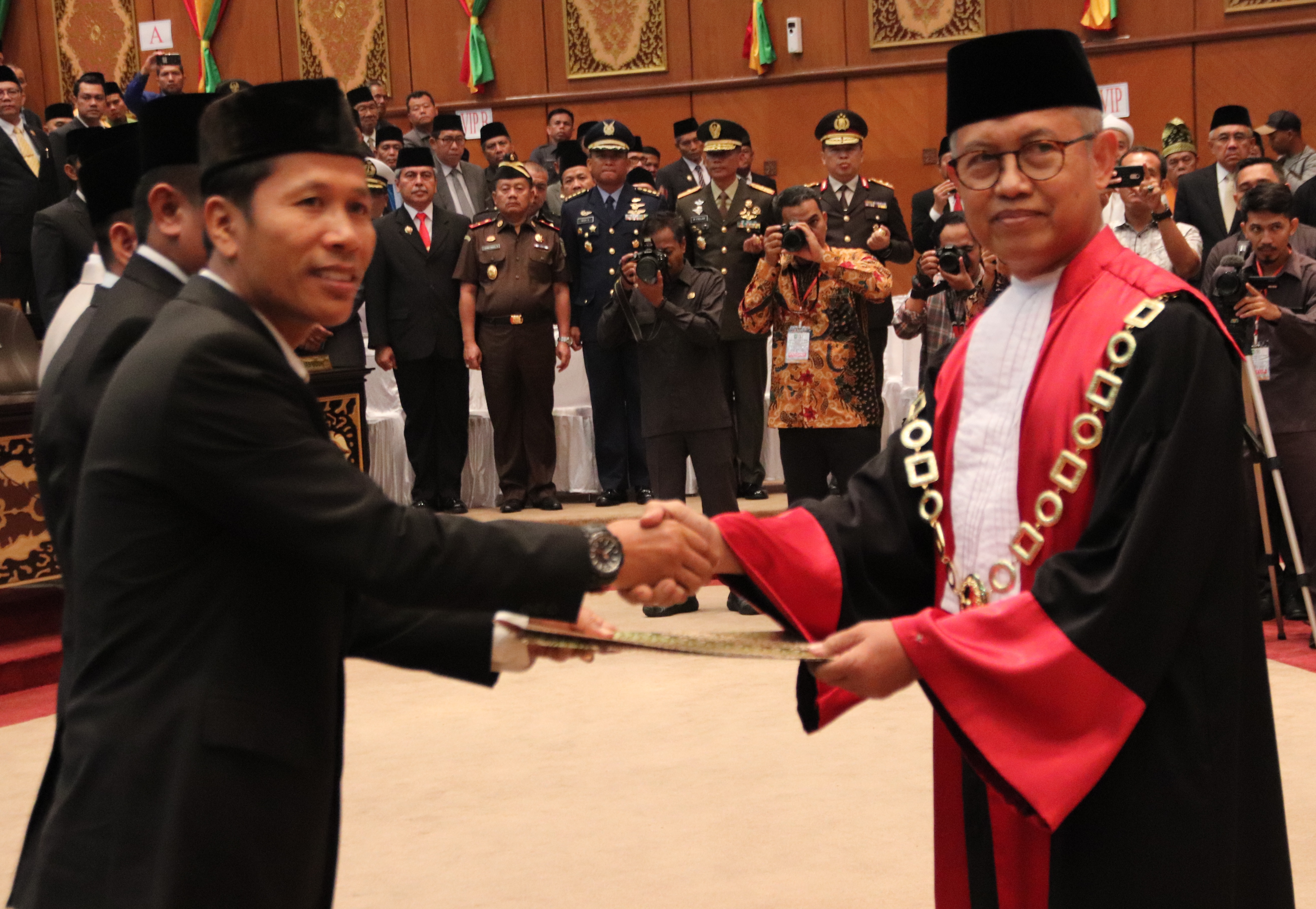 Usai dilantik oleh ketua Pengadilan Tinggi Riau, Indra Gunawan Eet dalam sambutannya menegaskan, bahwa pihaknya akan segera menyelesaikan tugas dan kewajibannya sebagai wakil rakyat.