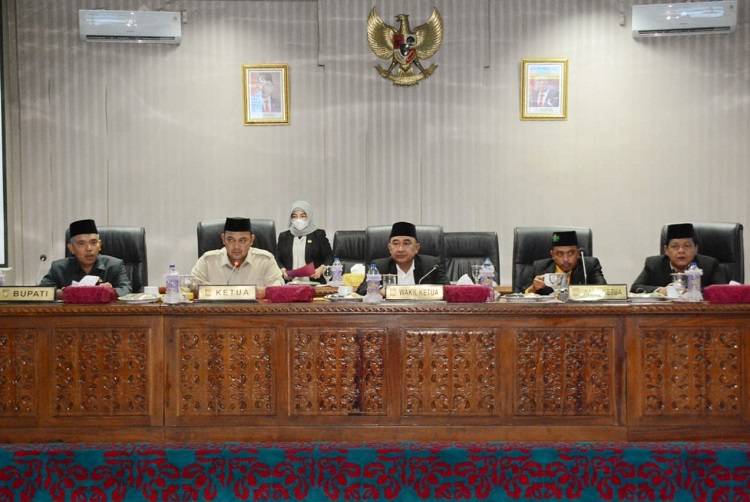 Rapat Paripurna Penyampaian Kerja Badan Anggaran Terhadap Ranperda APBD Kabupaten Kampar tahun Anggaran 2023 dipimpin Ketua DPRD Kampar Muhammad Faisal ST dan dihadiri langsung oleh Pj Bupati Kampar Kamsol.