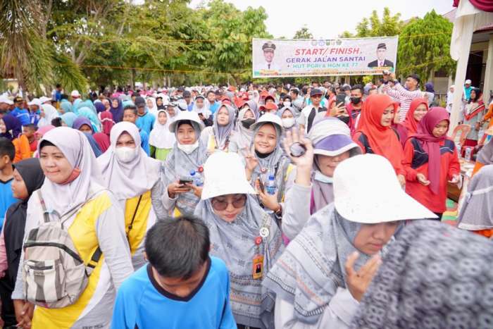 Dalam sambutannya, Ketua DPRD Kampar menyampaikan apresiasi atas terlaksananya kegiatan gerak jalan santai yang diikuti ratusan masyarakat hingga anak-anak.